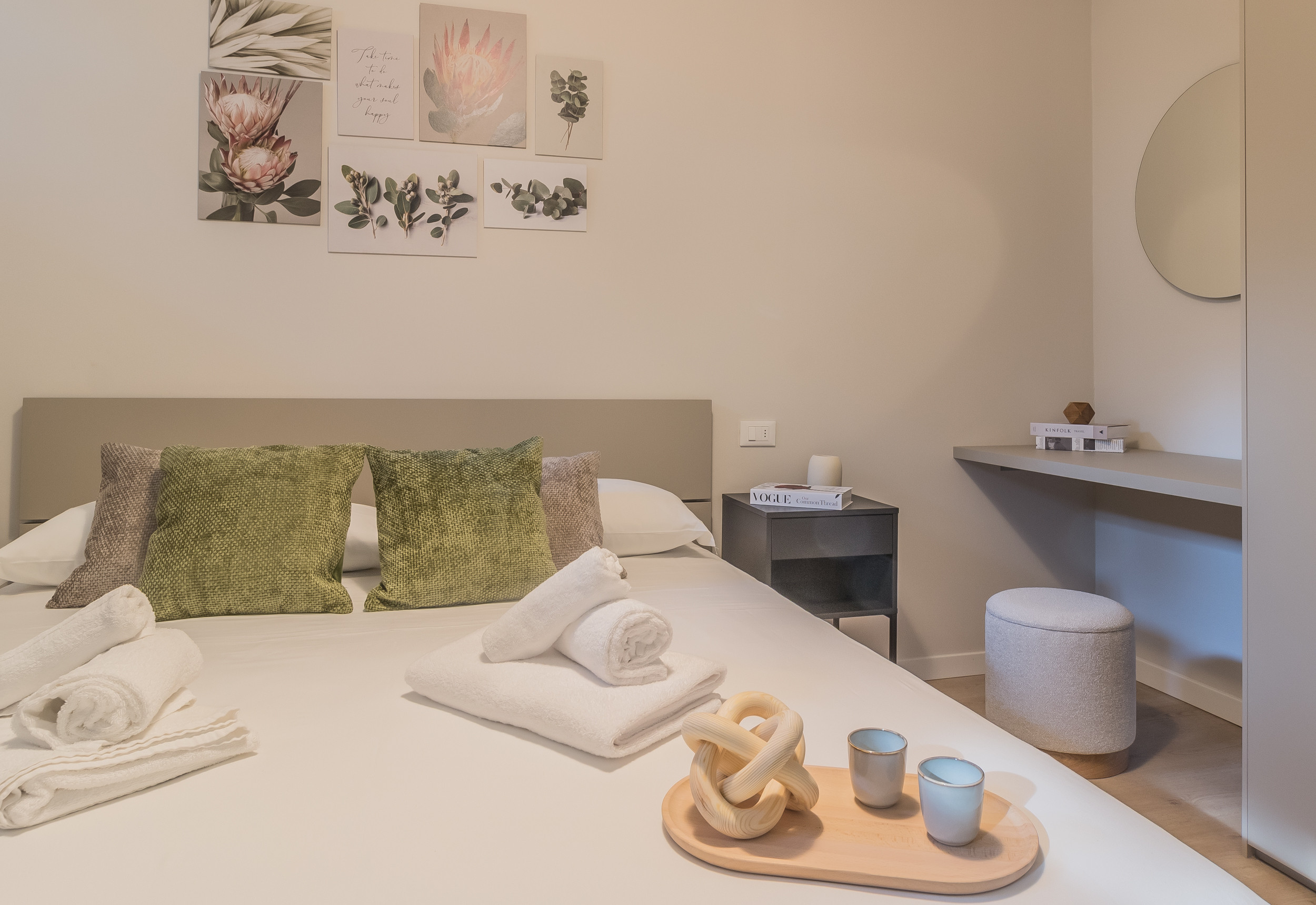 L'alloggio si trova al primo piano di un condominio affacciato sulla spiaggia, un punto di forza dell'appartamento. L'ingresso si apre su un luminoso e ben arredato soggiorno open space, che comprende il salotto, dotato di un comodo divano letto matrimoniale, e la cucina, con tavolo da pranzo e completamente attrezzata con piano a induzione, stoviglie, frigorifero, macchina da caffè, forno e tutto l'occorrente per preparare deliziosi pasti. Dal salotto è possibile uscire sul balcone che si affaccia sulla spiaggia del Lido, ideale per godersi un po' di vista sul lago e rilassarsi al suono delle onde.