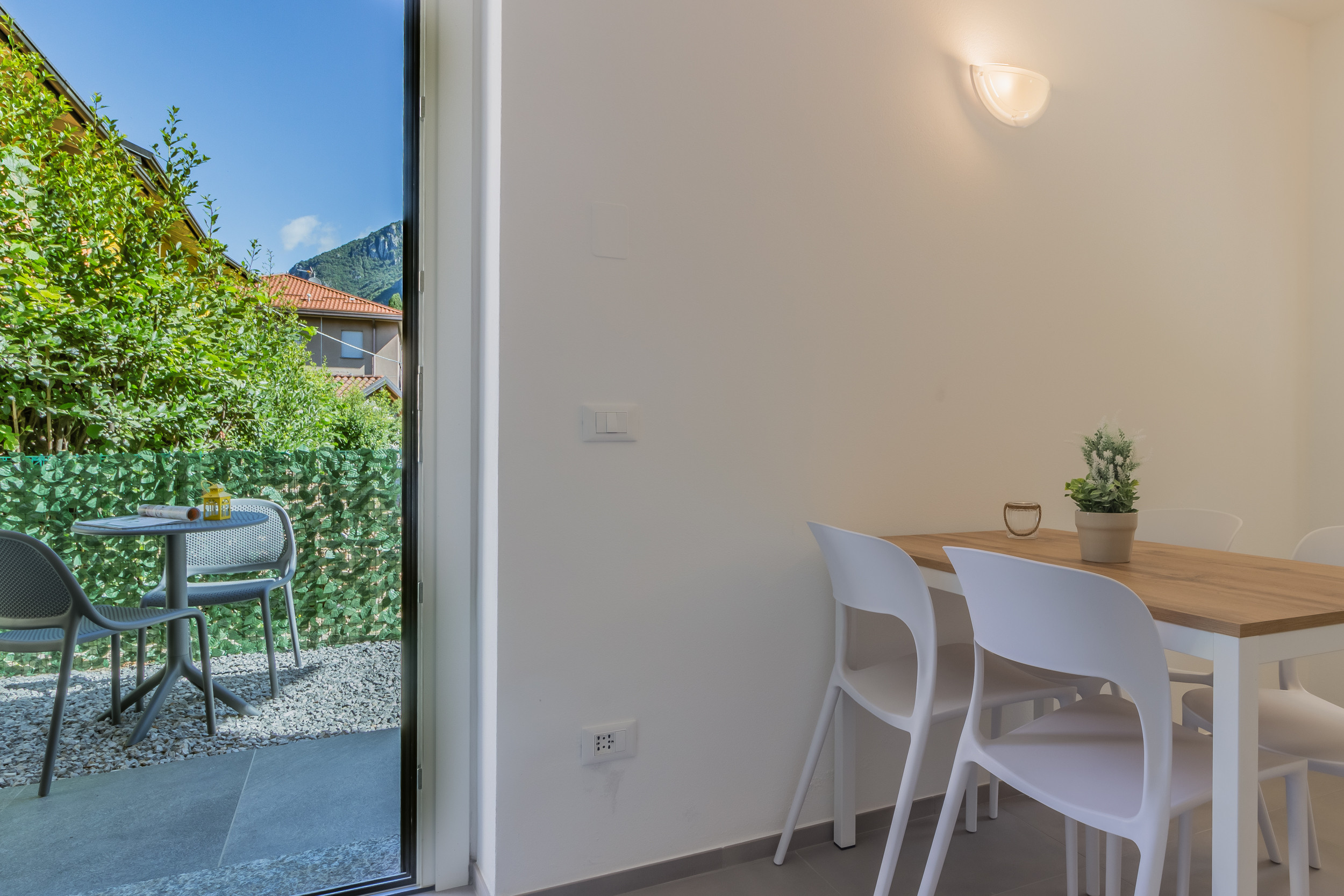 L’appartamento è disposto a piano terra e si apre sulla zona living, che presenta la zona pranzo e una grande e comoda cucina con fornello a induzione, attrezzata con lavastoviglie, microonde, bollitore, tostapane e tutti gli attrezzi necessari a preparare gustosi pasti.