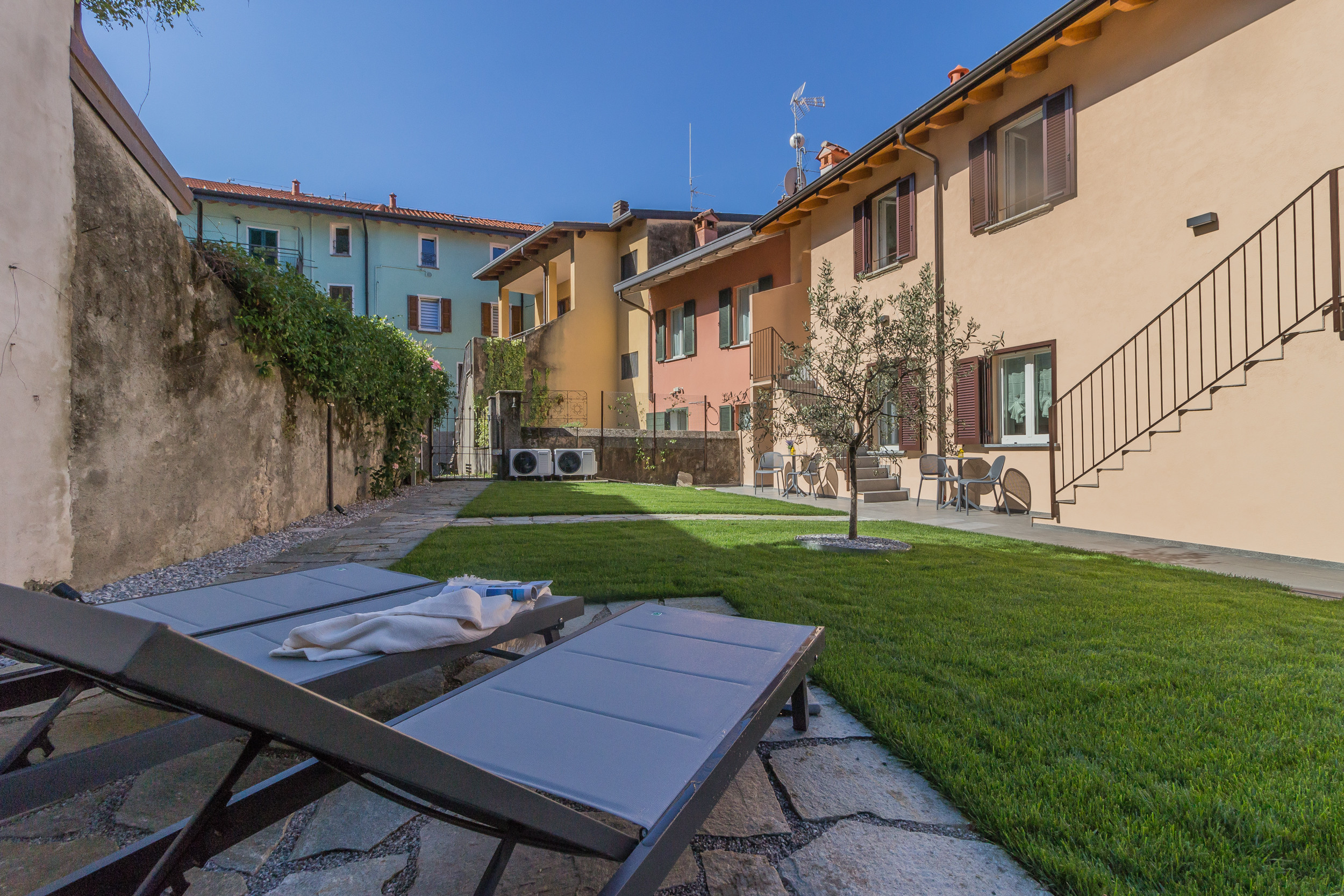La chicca di Cà Magnolia è l’ampio giardino comune all’edificio, completo di tavolino in ferro battuto e sdraio, perfetti per prendere il sole e rilassarsi alla brezza estiva della sera.