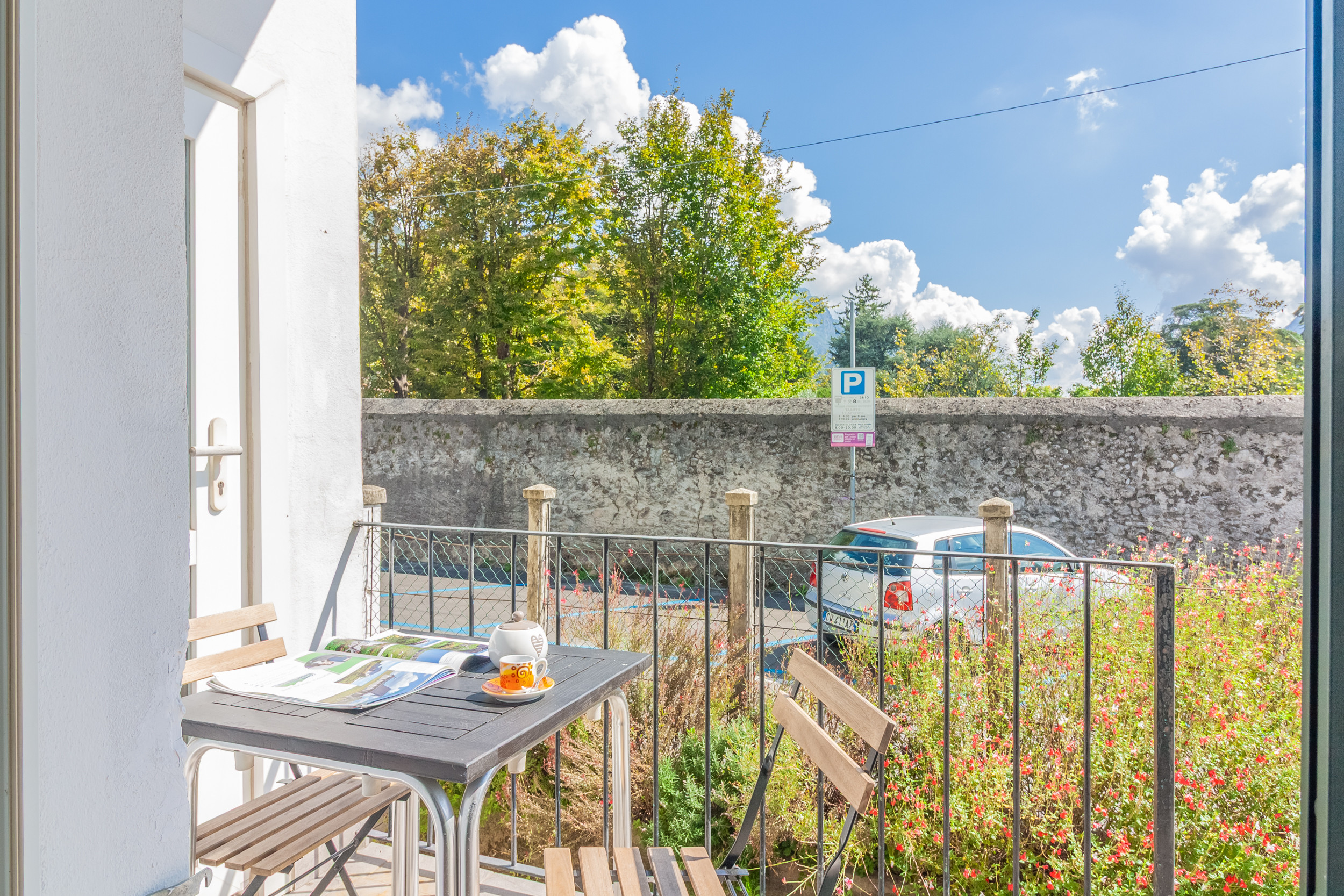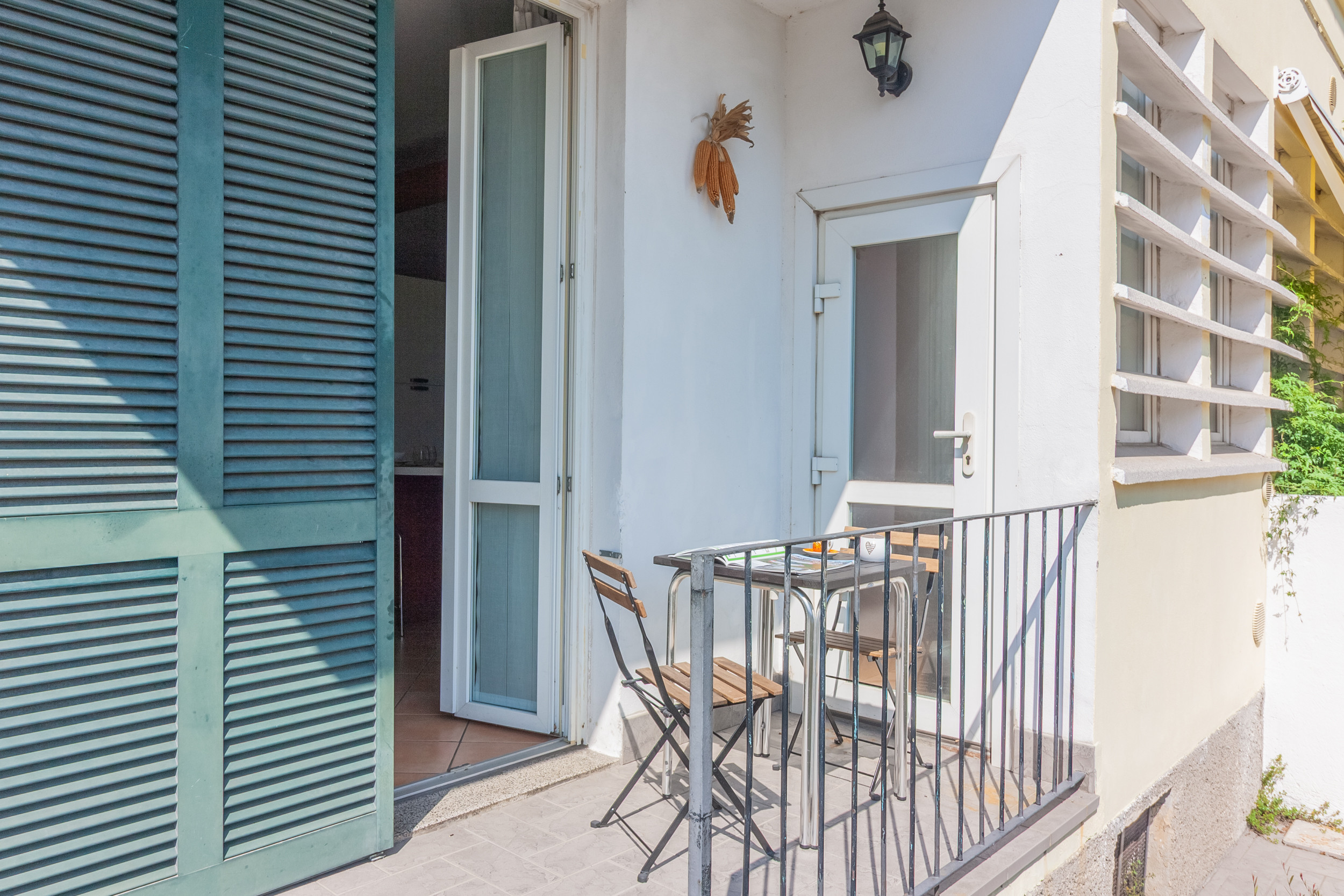 Dal soggiorno si accede anche ad un piccolo balconcino, dove tavolino e sedie consentono di rilassarsi godendo dell’aria fresca e delle belle giornate.