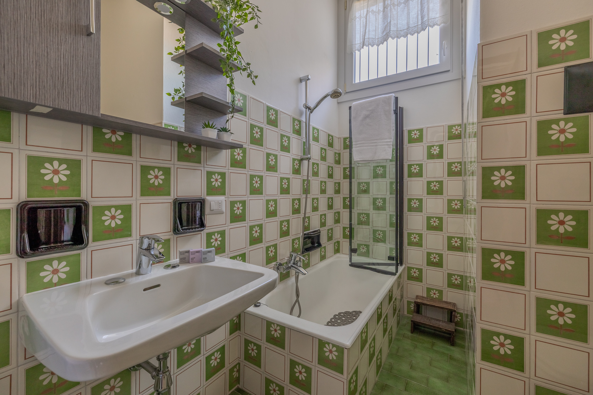 Proseguendo troviamo la camera da letto, con letto matrimoniale e accesso al balcone, e il bagno, dotato di doccia, lavabo e wc.