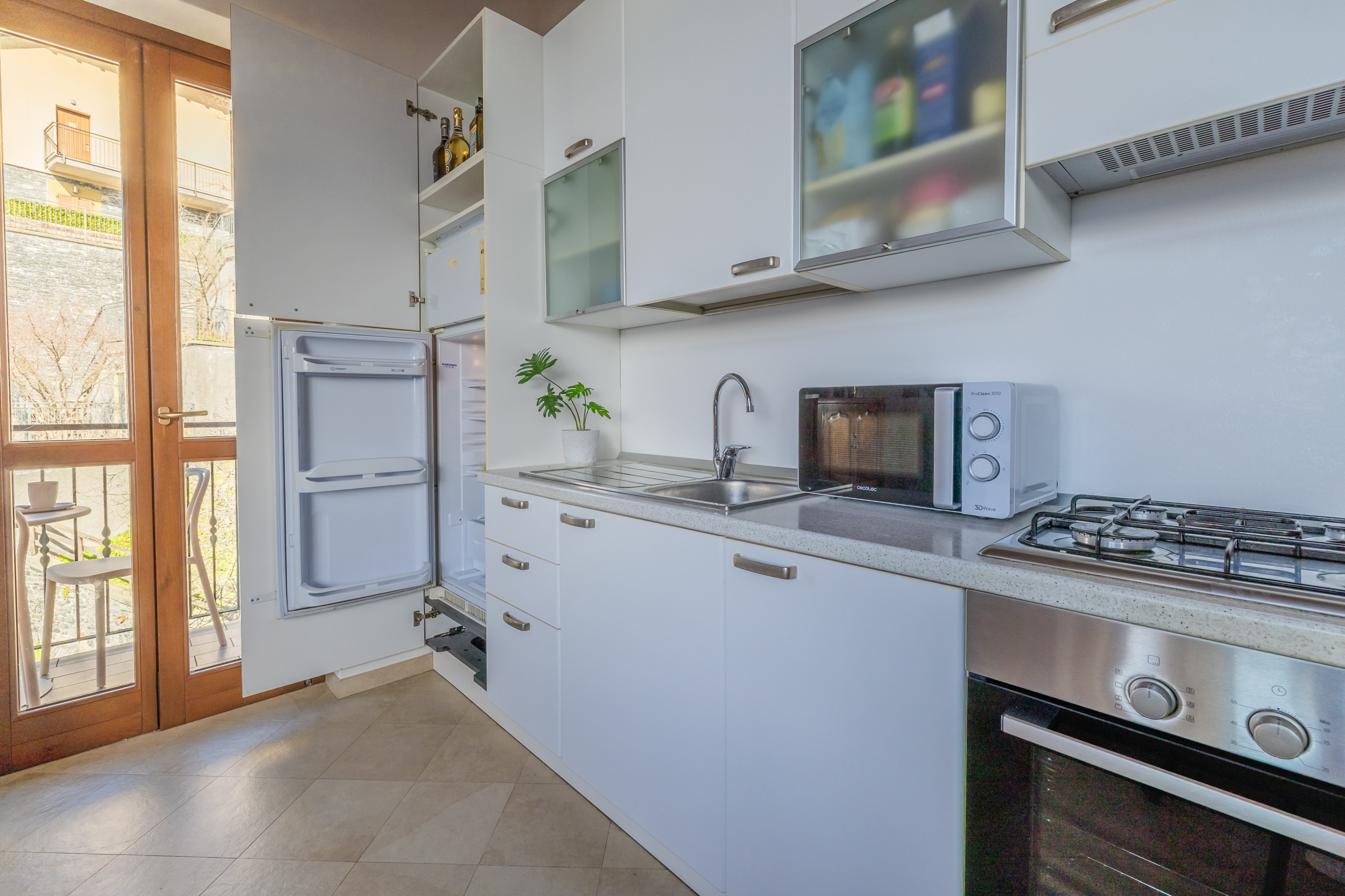The apartment opens onto the living area, consisting of an open space with living room, equipped with sofa bed double and TV, and kitchen with dining table and fully equipped, perfect for preparing delicious dishes to enjoy overlooking the lake. The sleeping area consists of a double bedroom and a bathroom with shower, sink, bidet and toilet. From the living area and bedroom you can access a lovely balcony where table and chairs allow you to relax, enjoy the sun and tasty aperitifs with spectacular lake view.