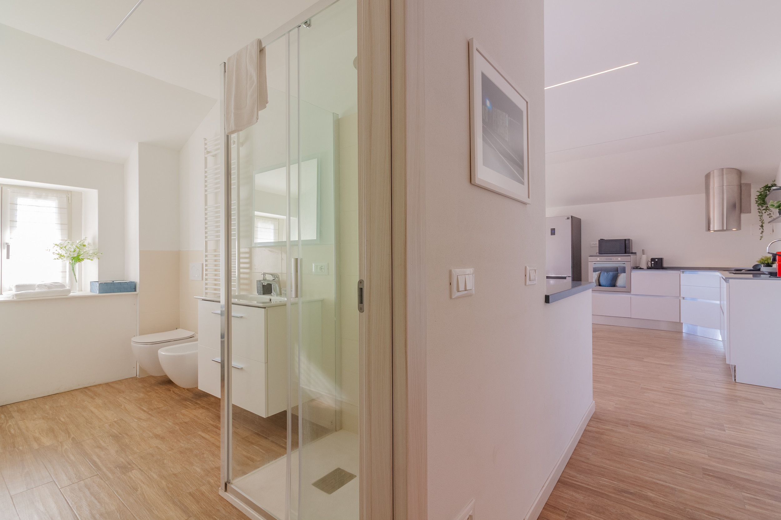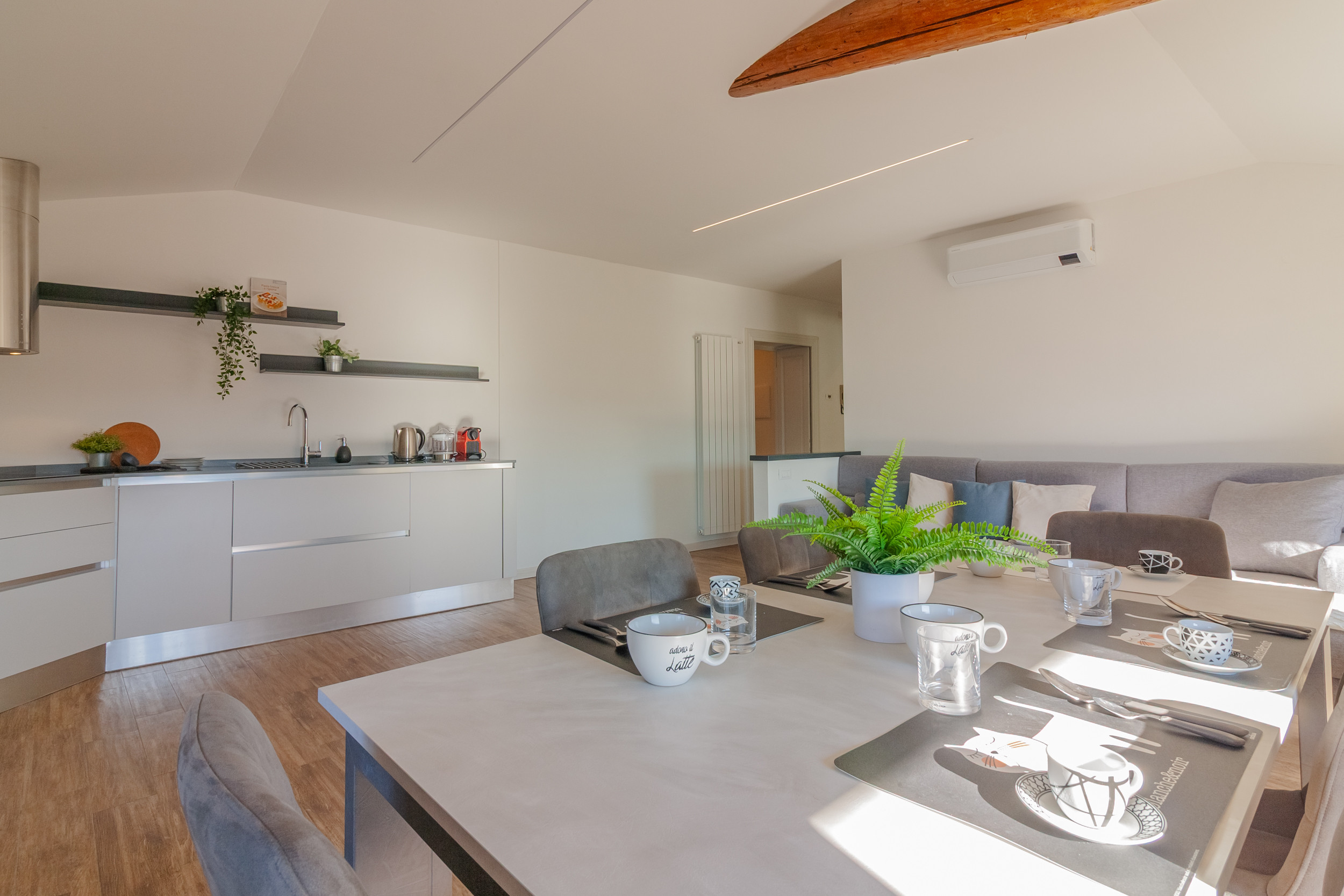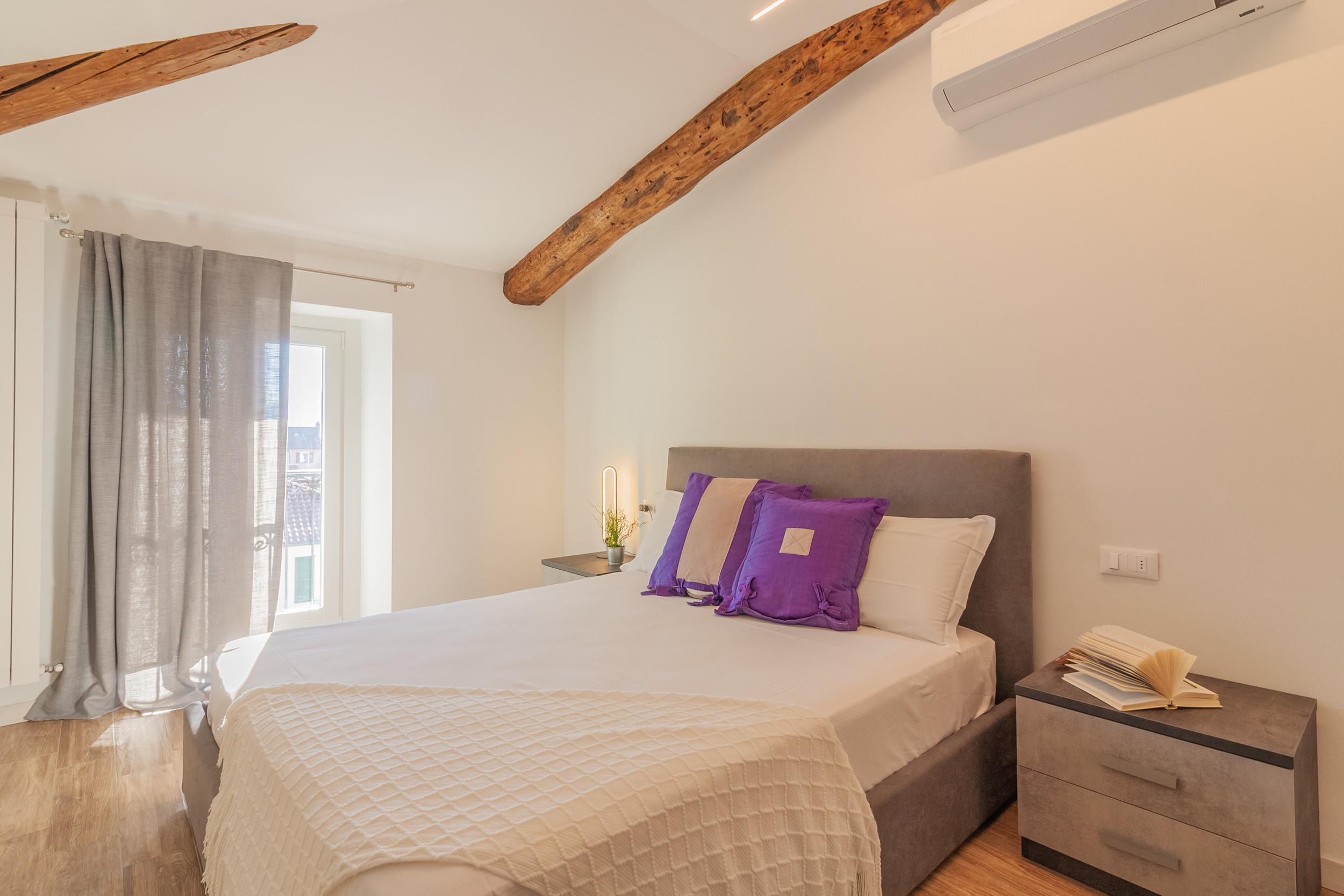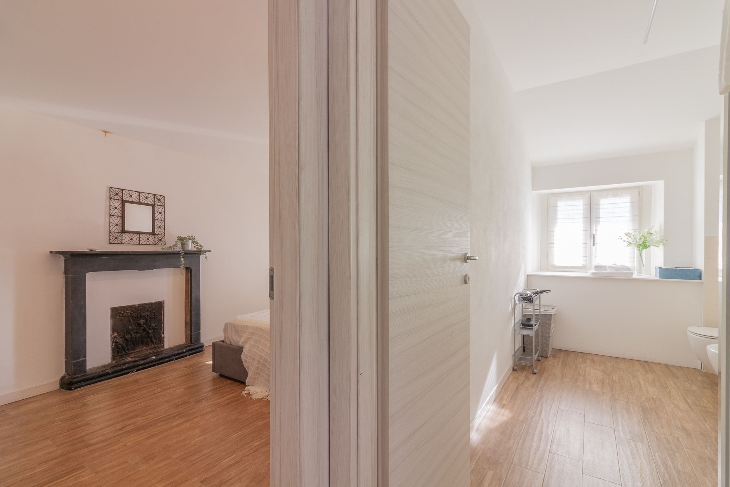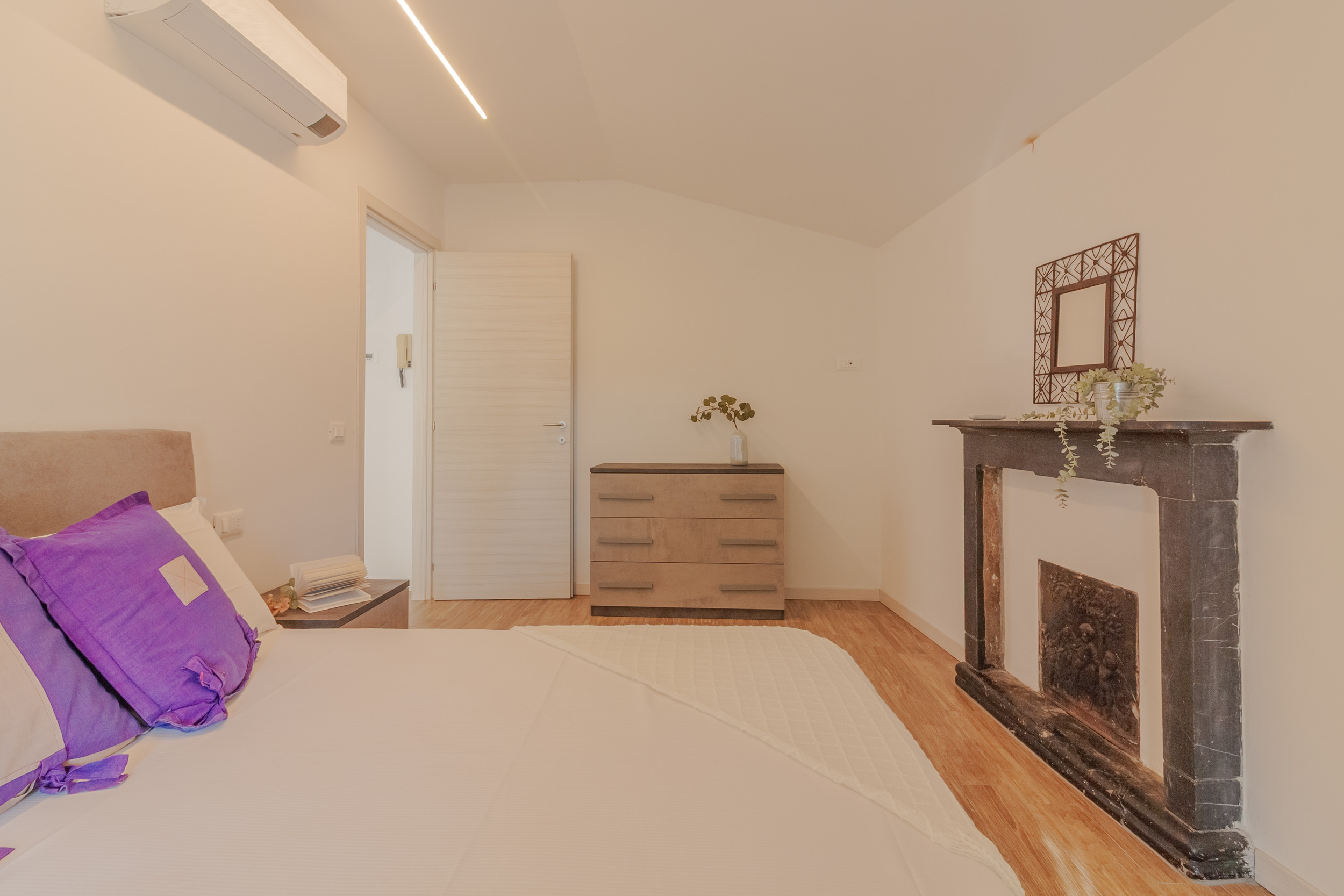 The apartment features a modern yet distinctive style, with thoughtful and exquisite details, such as some exposed beams and the ancient fireplace in one of the rooms. The accommodation is also equipped with all amenities such as Wifi, hairdryer and air conditioning, as well as a comfortable private parking space near the property, so you can enjoy a completely relaxing stay in an evocative setting.