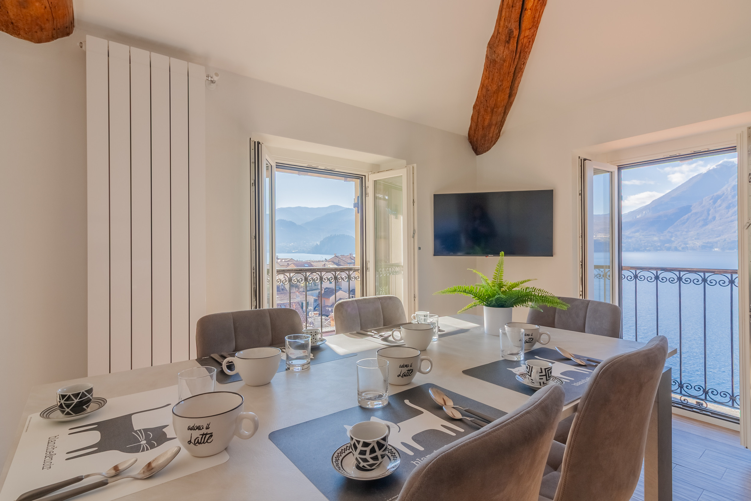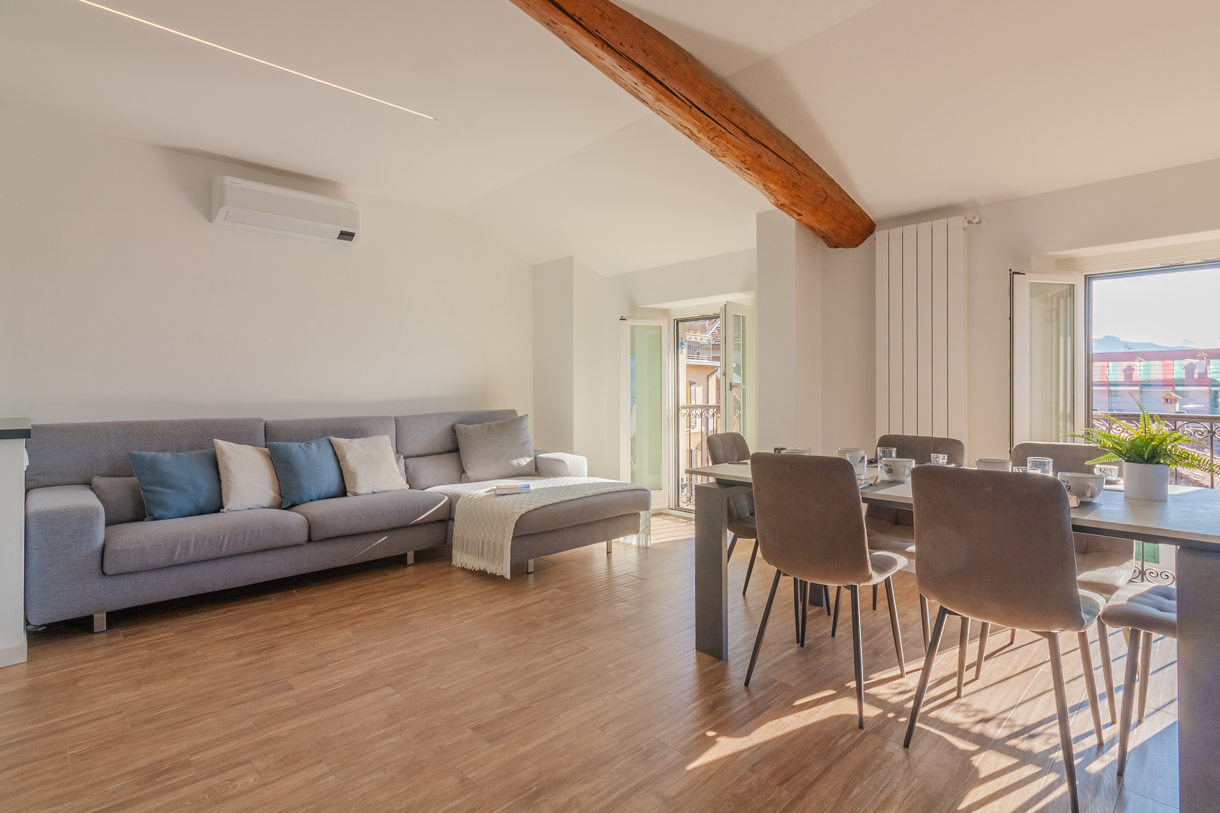 From the living room, three large windows open onto the breathtaking view of the Lake and the historic center of Varenna, allowing you to enjoy the view and make the environment very bright.