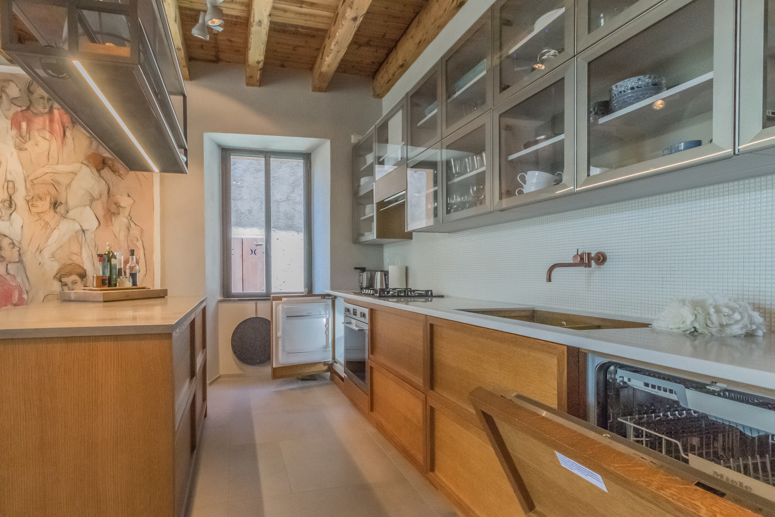 Garden and views of the lake! We cooked dinner twice and the kitchen had everything we needed- including seasonings and olive oil! All the amenities are very high end and modern but the home is set into an old Space with some areas with rock ceilings paired with modern glass doors- very authentic but comfortable! We had cool air through open windows at night with a peaceful neighborhood- even though there’s a hotel a block away and it was July!! And the extra bonus was the small beach a block down the hill!! We rated this place as our favorite for our whole stay in Europe! |