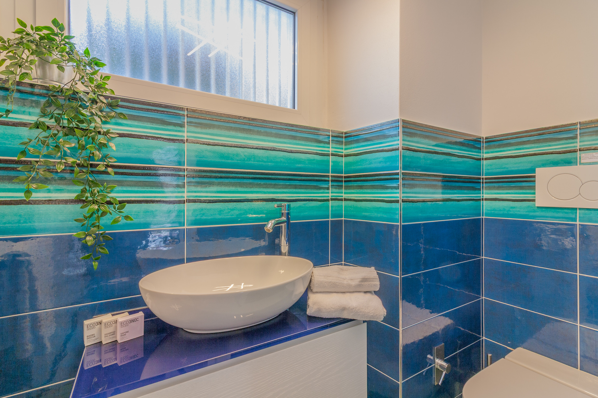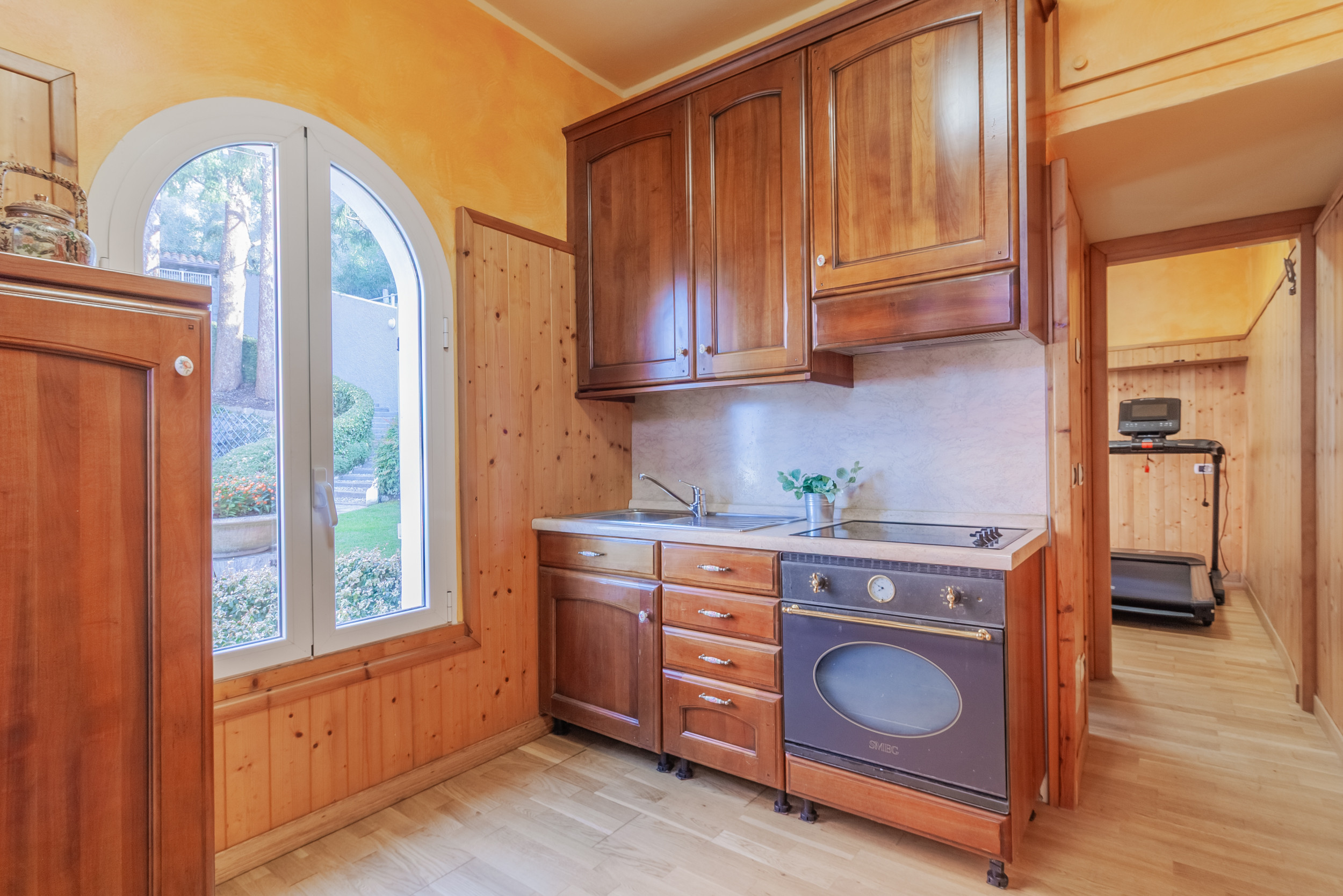 The Villa is arranged on several levels: the ground floor consists of entrance hall, living room equipped with comfortable sofa and from where a wonderful view of the lake opens, fully equipped kitchen and service bathroom with toilet and sink.