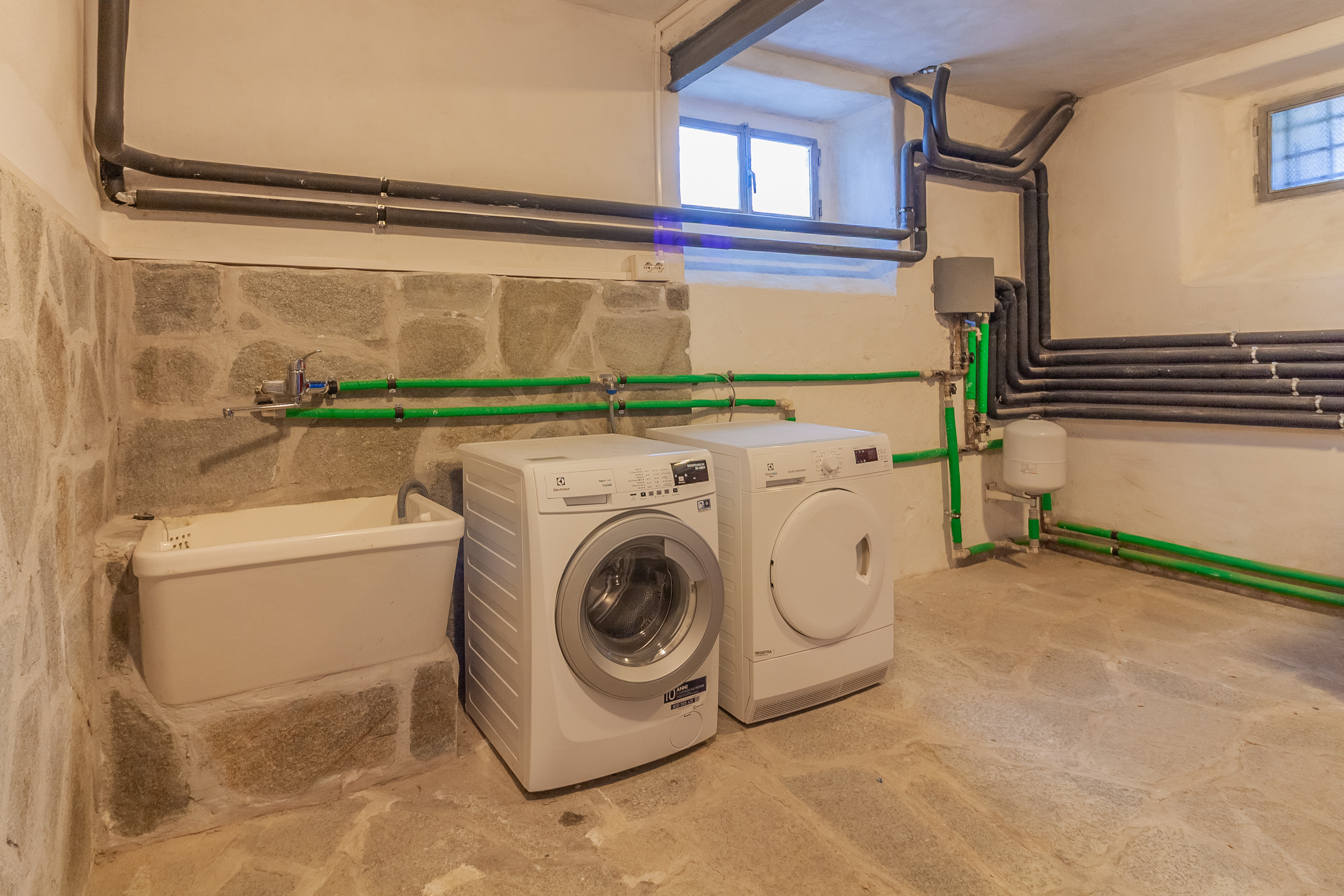 In the basement we find the laundry area with washer and dryer and a spacious storage room.